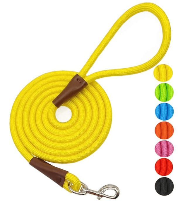 Leash MayPaw 4FT/6FT/8FT/10FT Dog Leash, Classic Solid Colors, Durable Mountain Climbing Rope Dog Leash Reinforced with Leather Tailor Connection Heavy Duty Silver Clasp