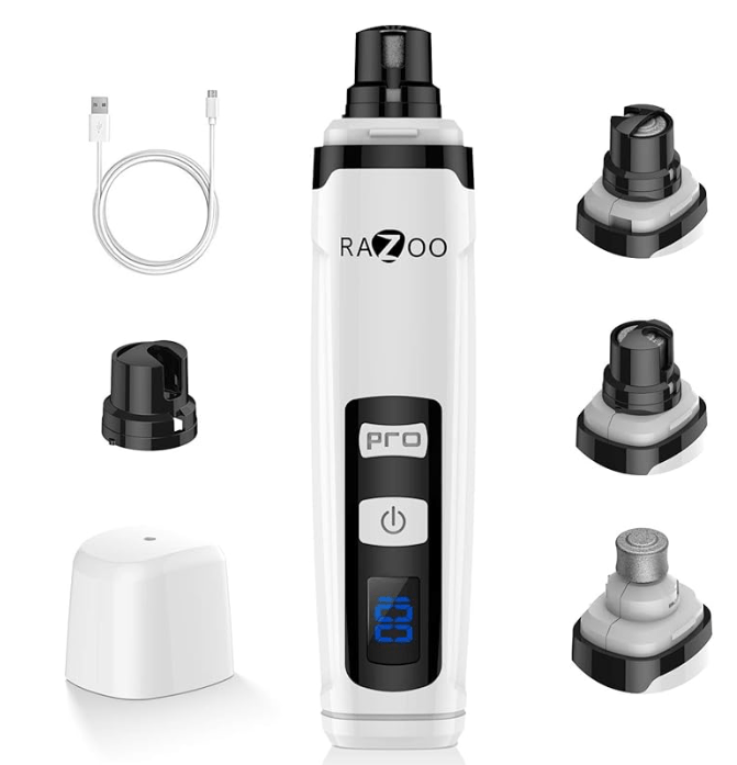 Nail grinder Razoo Dog Nail Grinder Professional 2-Speed Electric Rechargeable Dog Nail Trimmers with 2 LED Light, Painless Low Noise Dog Nail Clipper File for Small Medium Large Dogs & Cats